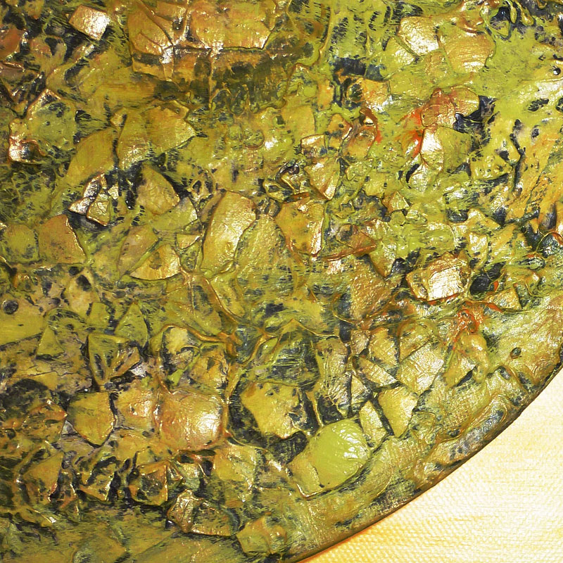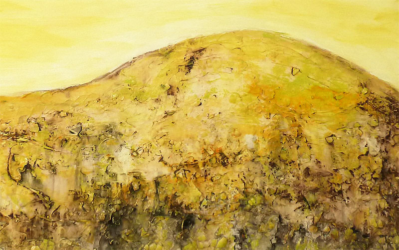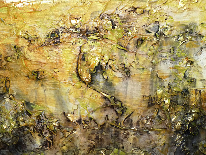 Acrylfarbe, Spachtelmasse, Fixativ, verschiedene Naturmaterialien