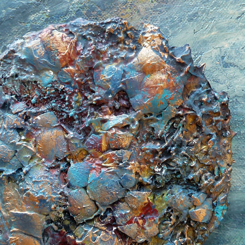 Acrylfarbe, Spachtelmasse, verschiedene Naturmaterialien