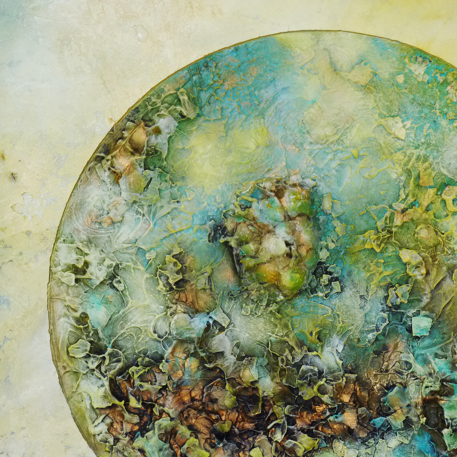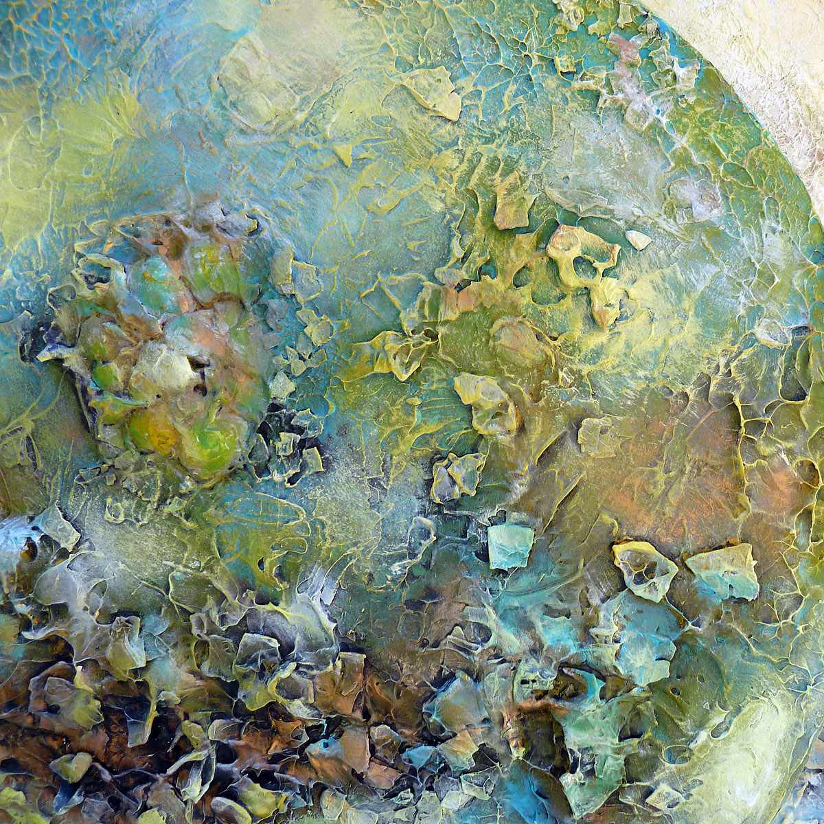 Acrylfarbe, Spachtelmasse, Fixativ, diverse Naturmaterialien