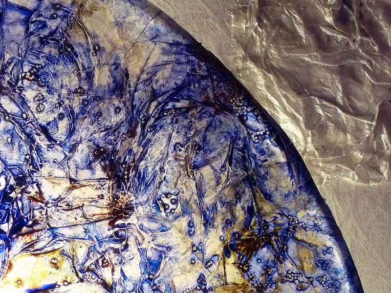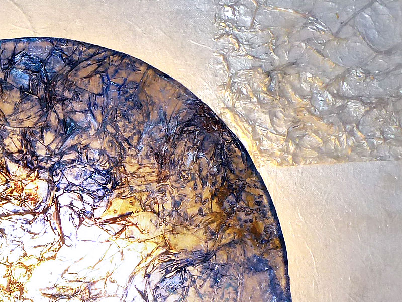 wire ring (Ø 45 cm), lampshade foil, natural paper