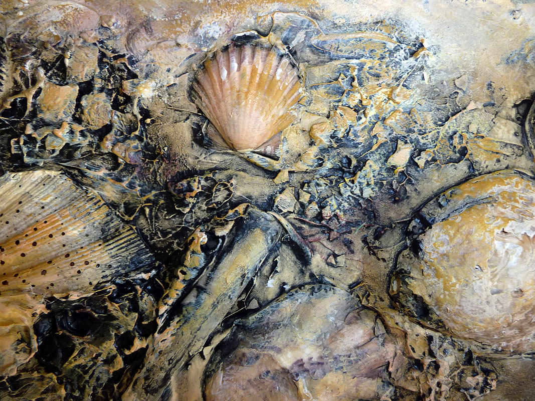Acrylic paint, putty, various natural materials