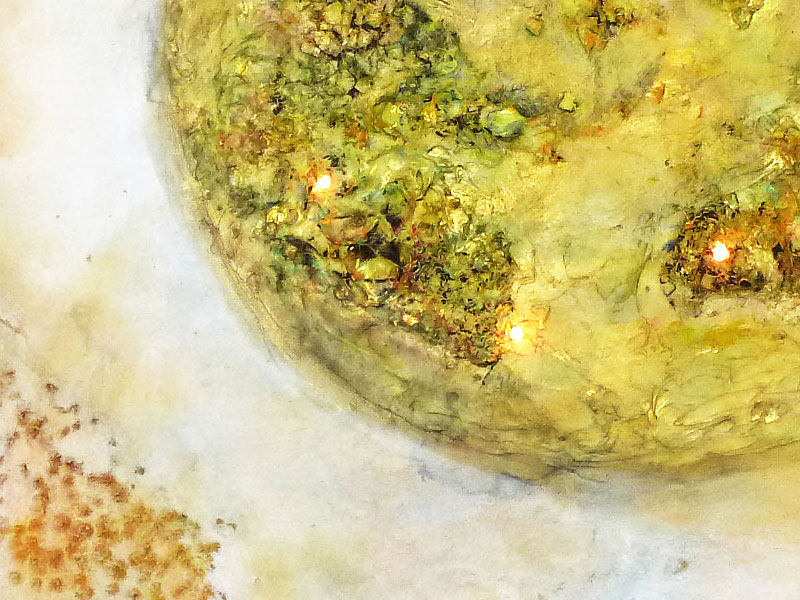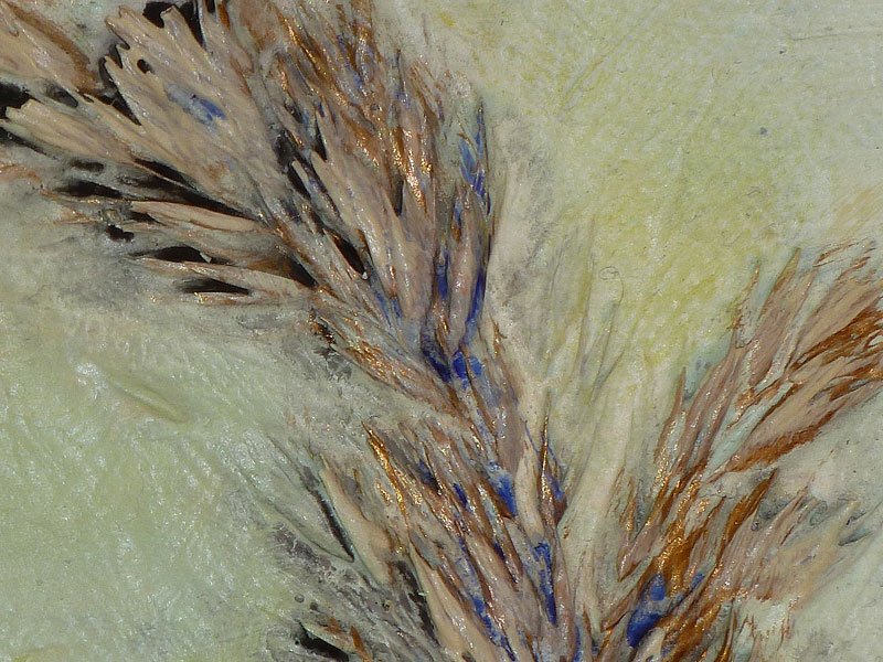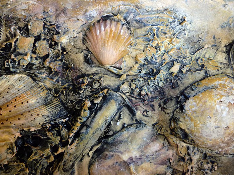 Acrylic paint, putty, fixative, various natural materials